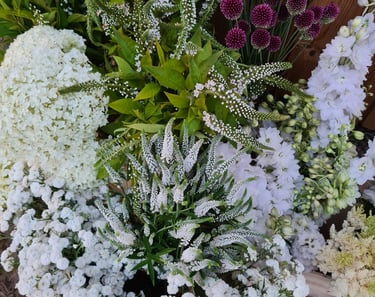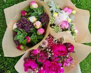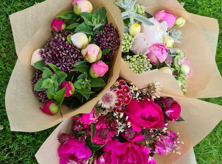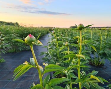 Didžiąją ūkio dalį užima bijūnai, jų auginame daugiau nei 40 veislių. Taip pat turime nemažai narcizų, dek. česnakų, margučių, eremūrų bei kitų svogūninių gėlių. Auginame įvairias daugiametes ir vienmetes gėles. Švenčių dekoratoriai tikrai ras, iš ko pasirinkti. Mums be galo smagu matyti savo užaugintas gėles dekoratorių bei floristų darbuose. Kviečiame visus užsukti ir susipažinti.