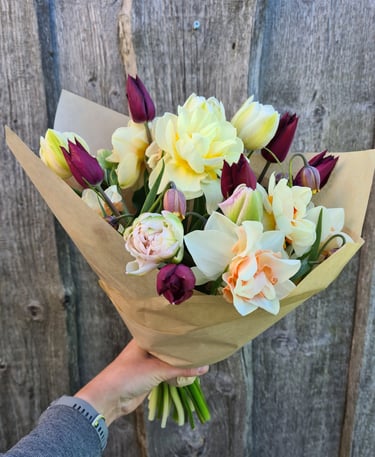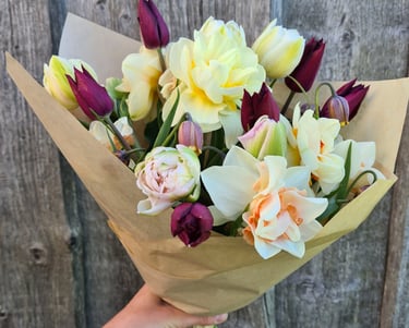 Kaip ir daugelio gėlininkų pažintis su gėlėmis prasideda dar vaikystėje, taip ir mano - auginu gėles nuo tada, kiek pamenu save. O mūsų ūkio istorija prasidėjo 2018 metais, kai įsigijome sklypą gražioje vietoje Kauno marių apsuptyje. Nuo tada tapau ūkininke ir pradėjau auginti įvairiausias gėles puokštėms (nes tai mano didžiausia aistra), o vėliau ir floristams bei dekoratoriams. Kiekvieni metai ūkyje - tai neįkainojama patirtis, sugyvenimo su gamta, susitaikymo su jos išdaigom. Ji kiek duoda, tiek ir atima, matyt visur turi būti pusiausvyra. Tačiau kad ir kaip tai kartais atrodo beprotiška ir nuostolinga, tiesiog negaliu neauginti gėlių.